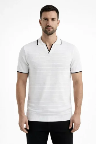Erkek 2li Paket Triko Yakalı Düğmesiz Açık Yaka Fitilli Kısa Kollu Regular Fit Tişört Beyaz Mint Yeşili